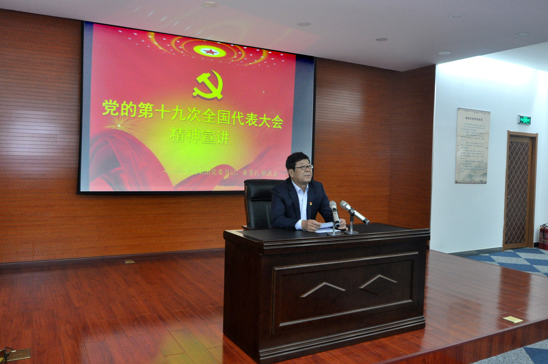 天津安达集团作为东丽区民营企业的领头羊,时刻走在时代前列,集团党委书记董事长崔洪金在深入学习习近平总书记的报告后,深刻领会和准确把握报告提出的重要思想、重要观点、重大判断、重大举措,并在集团内部迅速掀起学习宣传贯彻热潮。2017年11月6日一早,在集团党委的统一安排下,由集团党委书记董事长崔洪金亲自给安达集团全体党员讲党课,宣传十九大报告精神。