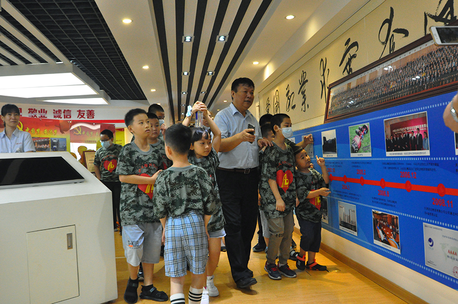 在企业文化展厅,由集团工会主席郑宝彦向孩子们介绍安达整体企业文化。天津安达集团始终秉持"爱国、敬业、求实、奋进"的企业精神,同时将企业的责任理念延伸至扶贫救困、特殊教育、环境保护、公共秩序等众多领域,赢得了社会各界的广泛赞誉,多次荣膺"全国文明单位"、"爱心企业"、“诚信示范企业”等殊荣。