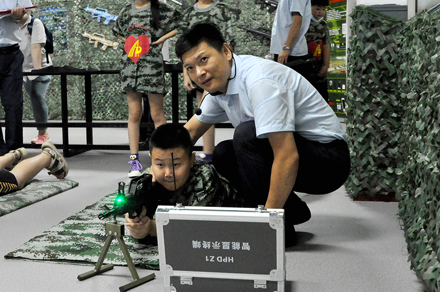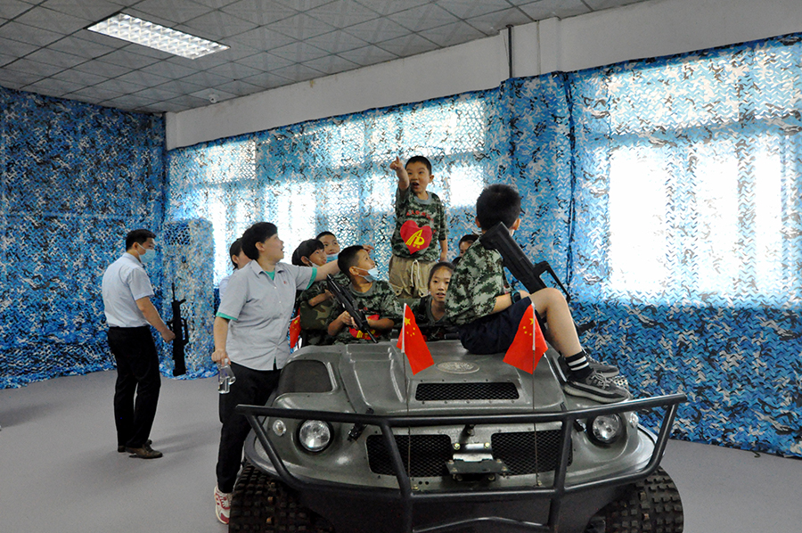 在国防教育展厅,由集团党务科负责人王奇向孩子们介绍了安达集团汽车营二连连部建设、战备训练、物资装备等情况,特别是在国防战备库展厅,用通俗易懂的语言向孩子们详细介绍了军用器械、救生衣和战备物资等军事用品的使用原理和方法,最后在国防教育基地,让孩子们亲身体验射击打靶项目,通过射击比赛的方式,充分调动孩子们的兴趣点和参与感。