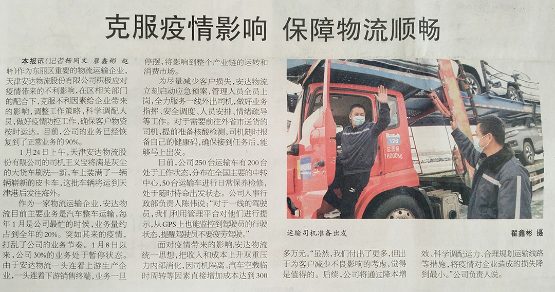 1月28日《天津东丽》第17版 克服疫情影响 保障物流顺畅