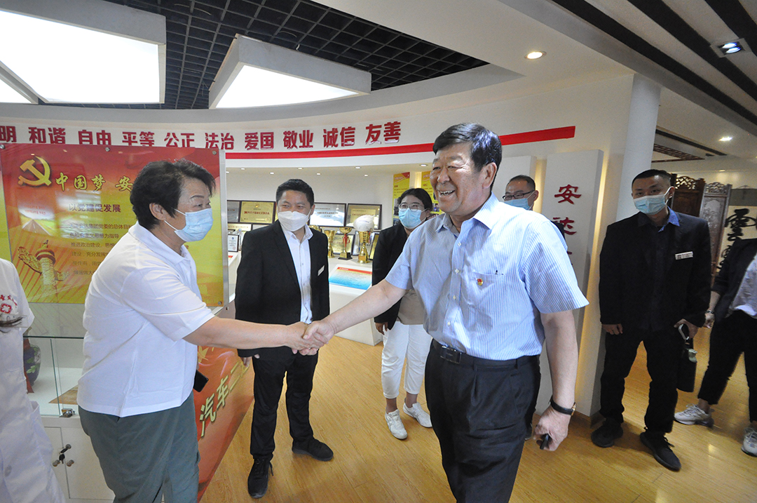 随后在五楼文化展厅,崔董事长把重点聚焦到慈善老人崔奶奶身上,作为崔洪金和崔洪英两位董事长的母亲,崔奶奶乐善好施,大爱无疆的美德完全传承到了两位董事长身上,并得到了更大发扬。崔洪金董事长常说:父母之恩,厚如高山,深似大海,父母给了我们生存的权利和拥有的一切。他曾是一名军人,深受母亲的影响和教诲,能将安达集团做到今天,并成立了以母亲命名的“天津市杨兆兰慈善基金会”。通过杨兆兰慈善基金会继续将母亲的善举大爱延续传承,持续帮助到更多困难家庭,残疾人士,进一步推动天津市慈善事业发展。同样圣发集团崔洪英董事长也是为了完成母亲的遗愿,建立了天津杨兆兰养老院,为敬老爱老的路上一直传承这份大爱。