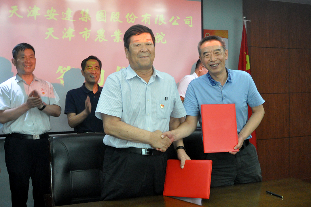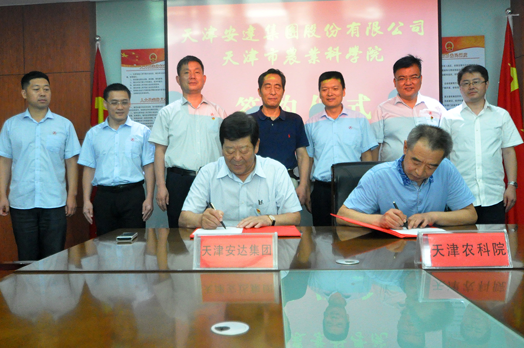 7月28日下午,安达集团党委书记董事长崔洪金与天津农科院资源与环境研究所所长刘向东在安达集团4楼会议室签署战略合作协议》天津农科院副院长仇继东、天津农科院农业资源与环境研究所副所长吴迪、党务办主任李佳佳;安达集团董事长助理王俊鹏、安达集团分公司鸿达精工总经理朱德江、副总经理庄儒国、安军公司总经理鲁志强共同出席签约仪式。