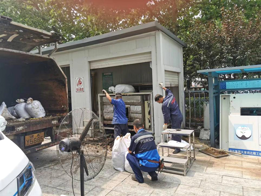 75日,在厨余垃圾处理设备例行检查中,售后服务人员发现位于西青区政府院内的设备处于停止状态,设备内装满未经处理的厨余垃圾,立即向西青区城管委报告。由于设备所处位置的特殊性,71413:00才能开始清理作业,当天务必完成。用户需求就是我们的命令,公司周密部署,提前做好有毒有害作业预案,安排精干人员、配备防护服、防毒面具等安全防护用品,确保圆满完成这次任务。