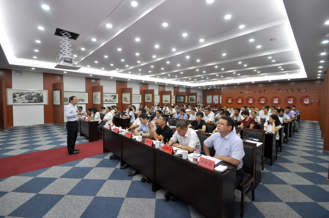 会后,市委统战部副部长市工商联党组书记刘道刚同志,以“且凭赤诚固伟业,党建助企振翅飞”为题,为在场的所有会员企业党委书记和党员讲授了一堂关于非公党建工作如何开展的生动讲座。道刚书记分别从“怎么看?怎么干?干什么?”三方面详细的分析如今非工党建工作的重要性,通过真实案例生动阐述开展非公党建工作的方式方法。整堂讲座生动活泼、互动性强,受到在场所有会员企业党委书记和党员的一致好评和赞赏。
